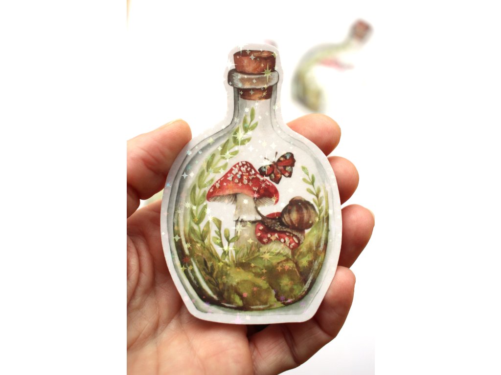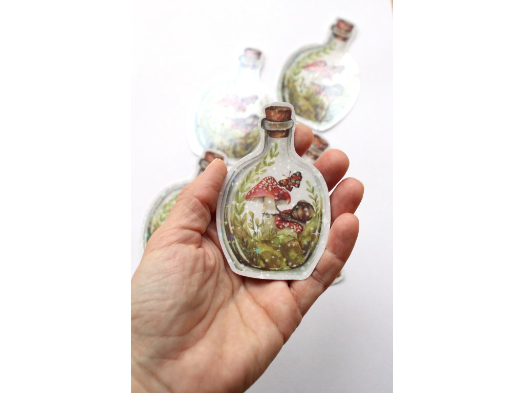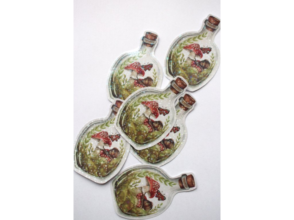 samolepka je zalaminovaná holografickými hvězdičkami.